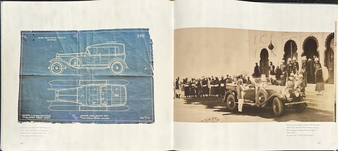It is a lovely book, to be sure. Heavy, in landscape format, bound in dark blue linen and with light blue endpapers matching the colors of the actual car. Clearly, someone paid attention to the details—but it doesn’t carry through. The book begins with a history of the house of Mewar and its origins with the Sun God Surya, portrays the 76 illustrious forebears/custodians in miniature paintings and even more miniature legends, takes a quick look at the connection between Rolls-Royce and India, and depicts the Palace Motor Garage. Splendid period photos illustrate this section. Then the story seamlessly and somewhat abruptly switches to a 30-page photo essay of the restoration of GLK21. juxtaposing Before and After shots. Other owners of Twenties will find this sort of micro detail necessary, concours entrants may come to appreciate what all is necessary in terms of proper execution and documentation, but the general-interest reader will probably wish for either more narrative to make the subject more relatable or for less minutia. The remainder of the book depicts all sorts of car events in India from Mercedes Benz rallies to Shelby Mustang events, Indian concours, random Rolls-Royces old and new.