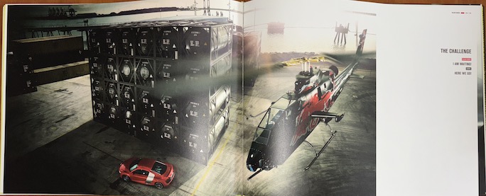But, back to that cover. What’s a confection like that doing all muddied-up in the first place? And why are there, warplane-style, eight bombs painted on the fender? The book explains—nothing. (The Audi is Kayser’s.) Because explaining is not what it’s about. What it is about is that quote above. In fact, if all you’re interested in is yet another glitzy siren call for sexy cars with sexy people in sexy locations, this book will leave you singularly cold and the hole it will leave in your wallet singularly hard to justify. But if you have an affinity for photography, and storytelling by means of photos, and for design, and more importantly the meaning of design, then this book will be enormously entertaining.