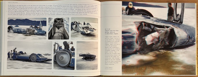 His notes, augmented by transcripts from interviews he gave in the 1970s, make up the text of this book. “Text” here means extensive photo captions in a somewhat conversational style, there being no other connective narrative except for a short Introduction. This is first and foremost a photo documentary and while there is a lot of information given, it is not organized in such a way (there is also no Index) as to serve as a stand-alone history of the Bluebirds or the Campbells. Considering how little text there is the number of typos is disproportionately high.