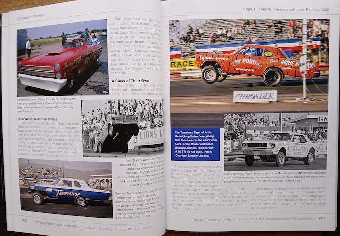 This history of AHRA is a typical Boyce period history as in fast-paced—racing, as the racers did, through the calendar highlighting each year/each competition. The generous fully captioned photos bring life and color to Boyce’s words.
