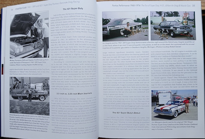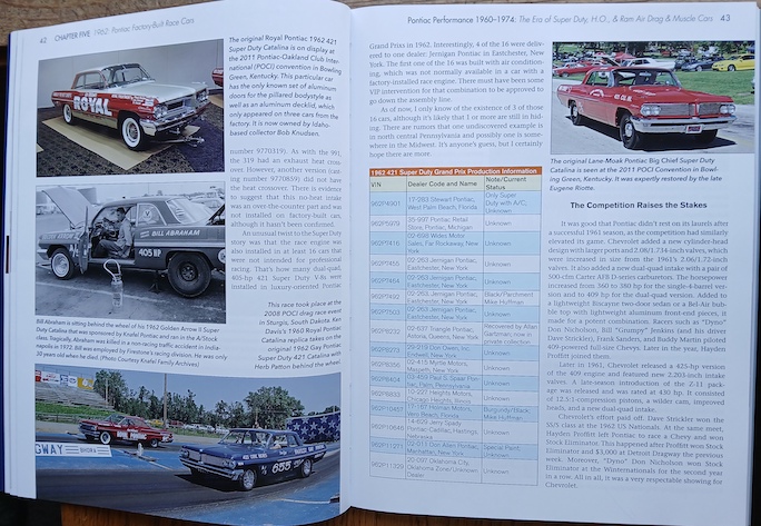 As the litany of names Keefe thanks for providing information and photos shows, he scoured the Pontiac-enthusiast world. A word about those images—especially the over 200 that are in color—is in order as many of the famous cars shown back when they were actively being campaigned as well as the really low production specially equipped cars extant today having been restored and shown especially at shows such as the annual (now going on 16 years as of its upcoming 2025 show) Muscle Car and Corvette Nationals (MCACN) or the Ames Performance Pontiac Nationals which will hold its 38th annual in 2025, are contemporarily photographed in all their glory. So images are generous and sharp, many featured large on the page.