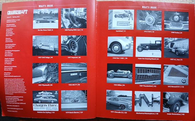 Crankshaft’s content is not as eclectic as either Special Interest Autos (SIA) or Automobile Quarterly had been as those familiar with those revered publications can attest. That said, Crankshaft’s content is more diverse than any of the Hemmings magazines created during Lentinello’s time as editor in chief overseeing that company’s publications. Each issue of Crankshaft is a genuine mix—older, newer, domestic, foreign—depending upon what has captured his interest or caught his eye and been captured by the lens of his camera.