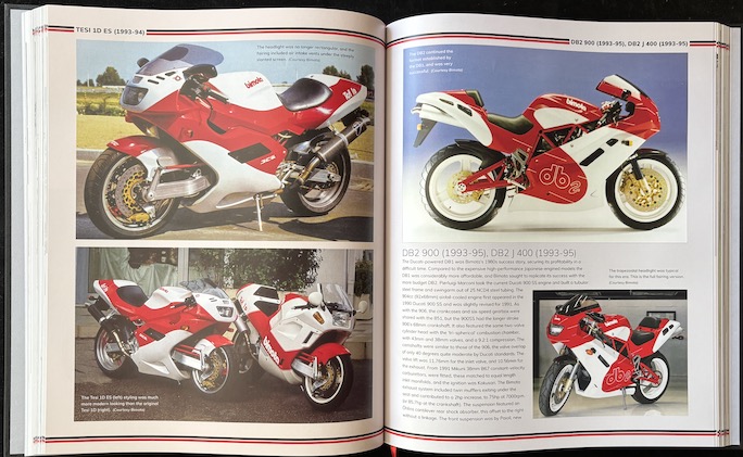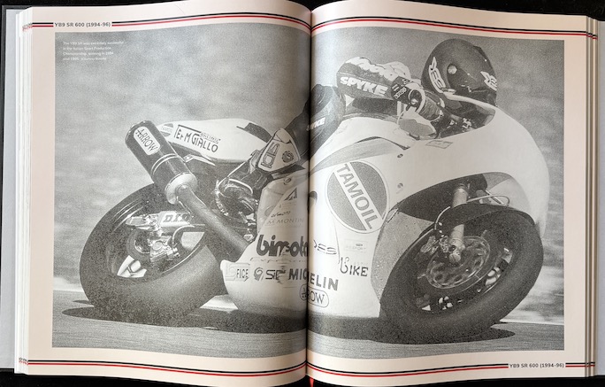 The book is very well illustrated but a note on the Intro page by the publisher begs to be emphasized: “less than ideal” original photos are better than none at all, even if the penalty is occasionally poor reproduction (see above). It does happen often enough, but you have to remember that even where the credit says “Courtesy Bimota” it doesn’t necessarily mean that these are professional grade factory images.