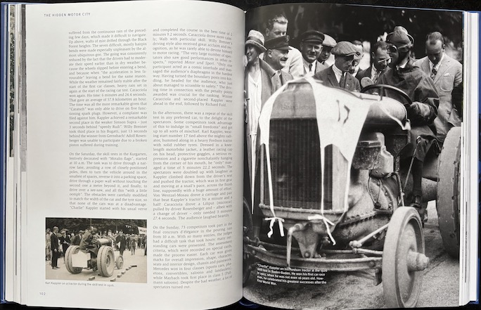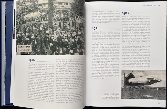 It’s not until the Impressum on the last page that you’d learn that the book was created “in cooperation with Wackenhut GmbH.” What form that took exactly is not specified. Wackenhut is not wrong when he remarks that the town is “a treasure that is probably unknown to many, or no longer remembered in this regard” so whatever support his company threw behind the book is a good thing even if does in places read like a Chamber of Commerce publication . . . which is the time to say that Seiter (b. 1956) was Head of Media and Communications for the city of Baden-Baden from 1990 to 2022. In that capacity he would have been immersed in any and all aspects of the goings-on in his town which would have sharpened his eye for relevant archival material such as the newspaper clippings he so extensively draws upon to flesh out societal/political as well as transportation-specific points. Not least, he’s been interested in classic cars since youth.