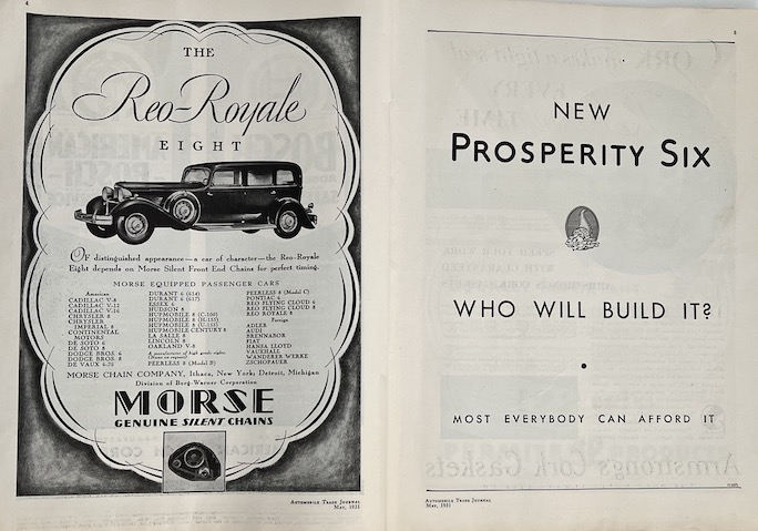 It is 1931. The Great Depression is in its infancy. Whether the editors are still optimistic as to the continuing growth of the industry or whether they want to instill an optimistic mindset for their readers remains substantially unresolved. And like the readers mentioned above, we modern-day readers will want to ignore our awareness of history, and, as we read through these 152 pages, enjoy the recollections of long defunct marques, get insight into the technology of the era, and savor the now quaint photographs, ink drawings and page layouts of the journal. Even so, we cannot but acknowledge, even if the acknowledgement is pushed to the back of our minds, that all of this will not end well. Those fondly remembered brands mentioned above, along with others all but forgotten, did not survive the years to come; and it wasn’t until the post-World War II American resurgence of production and wealth that the trajectory changed for the better and all went smoothly—at least for a few decades afterwards. This magazine, then, holds an historic weight, and it opens quite an interesting window into the manufacture of automobiles during the early stage of the Great Depression.