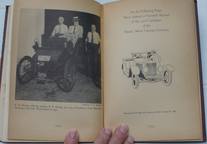 And now a bit of backstory. I purchased the Floyd Clymer softcover reprint edition of this book in the late Sixties. I had misread the title in the ad as “The Story of THE Stanley Steamer” and believed that I was purchasing a history of the Stanley Motor Carriage Company so I was initially somewhat disappointed to discover my error upon receiving the book. But instead of immediately returning it I figured I ought to at least have a look first. Before I knew it, I was hooked! I then read it cover to cover while I should have been spending that time on my academic course texts. It took only a few days, and I didn’t flunk my classes. I kept the book with me over all the ensuing decades and many relocations. A couple months ago I had a sudden urge to read it once again and am glad I did! I enjoyed it much more this time than I did the first time, no doubt due to my increased awareness of many of the subtleties that went over my head the first time around. I was sufficiently motivated to acquire a copy of the hardbound 1950 first edition, signed by the author, at a quite reasonable price.