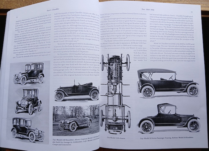 A straight-forward and very comprehensive history telling of the Chandler motorcars—all years and body styles noting specifics of production changes—as well as of the people involved, the company they established and ran, its growth and expansion and then the troubles that eventually led to its demise. It’s all presented chronologically, 1912 to 1929, in two parts with the first part focused on Chandler and the second on Cleveland.