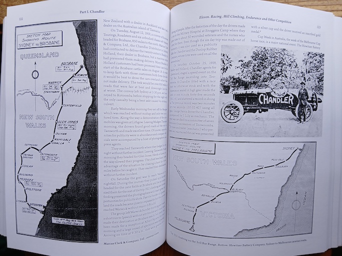 Chandler had dealers in 61 countries. These pages show maps of two routes over which Chandlers were driven virtually trouble free; one is Sydney to Brisbane, the other Sydney to Melbourne. Each required multiple days to traverse.
