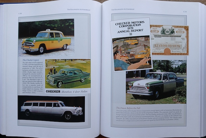 This is a big book at over 500 pages. But then it tells a big story; that of the transportation-oriented history of one place during its first century commencing with its 1891 origins. While one may not think of Kalamazoo, Michigan as an automotive mecca consider the following automotive makes and makers (listed in alphabetic order) that called it home: Barley, Blood, Cannon, Checker, Cornelian, Dort, Greyhound, Handley, Handley-Knight, Kalamazoo, Lane, Michigan, Pennant, Reed, Roamer, States, and Wolverine. In addition to those seventeen, others made trucks, train cars, and tractors. Each had its impact(s) and effects on the culture and lives of Kalamazoo’s residents.
