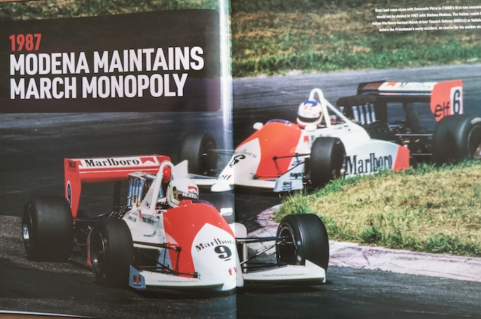 This is what might be called a meat and potatoes book, with enough substance to sate even the hungriest reader. The seasonal reviews leave few facts unspared, whether on drivers, race cars, team shenanigans, circuits, or rule changes as well as the races themselves. It’s shocking to be reminded that the era of drivers like Moreno, Thackwell, and Capelli racing big-power single-seaters at Pau, Enna, Donington Park, and Brno is now as distant as the reign of the Alfa Romeo 158 and Maserati 4CL was when F3000 made its debut. Time’s winged chariot [1] must have been turbocharged, right?