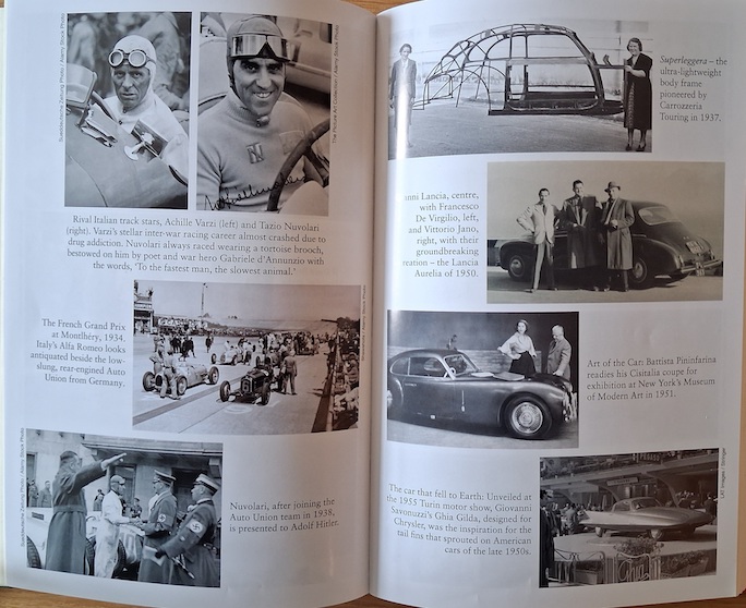 Reviewers normally make a note of quotations from the book to use in the review but I found myself with an embarrassment of verbal riches from Superveloce. I cannot resist quoting Pininfarina (yup, him again) on the suitability of the Fiat 500 for Italian driving, describing it as “the light cavalry which is needed to launch the attack on our cities, most of which have medieval layouts.” Words that resonated with me, as I recalled the angst of navigating even the most modestly proportioned Fiat through the tiny alleys and squares of Siena and Pisa. And finally, consider these words about Alfa Romeo, the most mellifluous sounding marque of all, as well as the one with the best badge (starring a red cross and a green serpent): “Alfa Romeo stands apart. . . . Its elements are like those of the human spirit which cannot be explained in logical terms.”