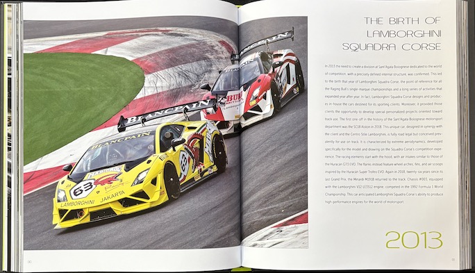 Neither the title nor the Table of Contents prepare you for just how much is on offer here—not merely the panoply of cars but also assorted sidebars addressing ancillary topics (design discussions, the factory, motorsports, restoration and the like) as well as several standalone sections of commentaries by key Lamborghini staff from executives to heads of design and engineering. The book doesn’t have an Index so audience participation will be required. The car models end with the Urus Plug-in Hybrid and the Temerario so the book title alluding to the “future” is rather short-term.