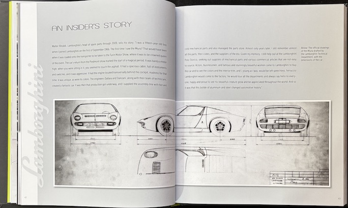 With these words the book opens. It’s a very nice book to be sure but that statement is not entirely correct. It is also not entirely wrong, but it’ll hit the wrong note for anyone who has Gautam Sen’s 784-page definitive Lamborghini: At the Cutting Edge of Design (2022) on the shelf because that one ticks those boxes too and in vastly greater detail—which doesn’t mean Pini’s book can’t add something. And if you add MSRP to the equation—a mere $60—this oversize 10.5 x 12″ hardcover very much deserves consideration, even if you have all the Lamborghini books worth knowing but especially if you love the artistry of books because the production values here—paper, printing, design—are impressive.