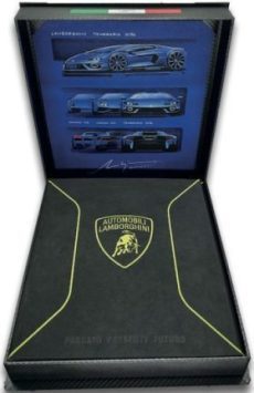 If you have already espied that the publisher is Schiffer Books you will probably wonder how an American house with a fairly small footprint in the (civilian) transportation sector landed such an exotic gig. Well, Schiffer is not the original publisher, the Italian house Edizioni White Star is (Automobili Lamborghini. Passato. Presente. Futuro. ISBN 9788854060630), which also explains the Italian author. Both editions were published at about the same time, and both also come in a deluxe Special Edition bound in authentic Lamborghini microsuede Dinamica cabin material (right), with a carbon fiber clamshell box and an artist sketch of the new-for-2025 Temerario model. You can’t even get a Lamborghini oil change for the $260 asking price (ISBN 9780764370427)!