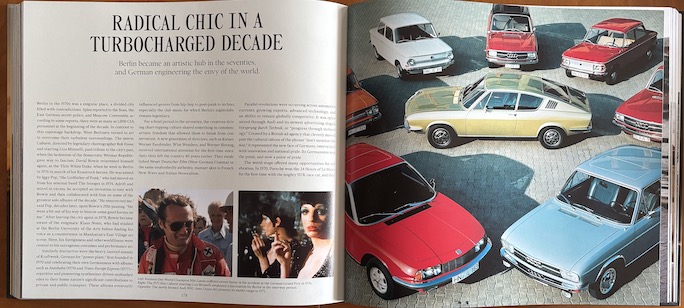 Cars range from the inevitable big names—540K, 300 SL, 911, Quattro (and if you don’t know what marques these models go with you’d better read this book anyway)—to the decidedly lesser known such as, say, a Glas 2600 (aka the “Glaserati) or RO 80. The common denominator is that these cars embody both the design vernacular of their era as well as a specific “German-ness.”