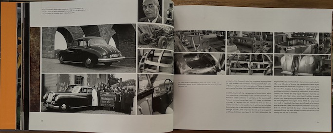 There certainly are some of the former here but that’s mainly to bring home the sheer vastness of the collection. The models the text singles out are pulled out of their rows and photographed individually, then in most cases juxtaposed with period imagery from Audi’s archive as well as restoration photos or close-ups if applicable. The write-ups are well conceived and thorough, not to mention really well translated.