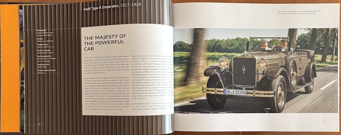 A typical layout: specs and intro followed by several pages of photos. This is an Audi Type R nicknamed Imperator due to its majestic size (1927–29).