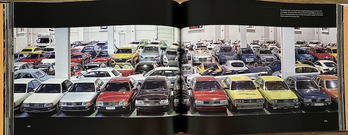 Motorsports, be it two- or four-wheel, actually do not dominate this book, nor do the firm’s historic predecessors called out in the subtitle. What this book does do is offer a mostly phtographic look behind otherwise closed doors at the Historic Fleet of nearly 1000 vehicles housed in several buildings administered by Audi Tradition, the Audi department formed in 1998 and tasked with tending to the brand’s history. Even if you went to the firm’s Museum Mobile at the Ingolstadt headquarters you’d not see everything that is in this book.