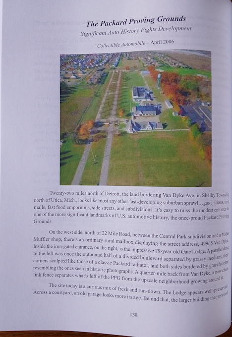 Opening page of article discussing the history of Packard’s Proving Grounds and how its “Significant Auto History [helped] Fight Development.”