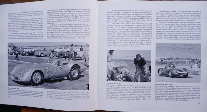 Left page top photo is a veritable who’s who of Scarab significants. L–r: Tom Barnes, Emil Deidt, Marshall Whitfield, Frank Coon, Jim Travers, Leo Goossen, Raul “Sonny” Balcaen, Harold Mauck, Dick Troutman, Phil Remington, and Harold Daigh.