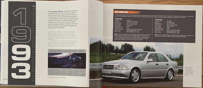 And here the book proper begins, 1993, the year AMG shared the Frankfurt Auto Show stand with M-B as an official partner. By that time the tuner movement of the 1980s had matured from a niche industry into the mainstream. In fact, M–B had long before started to offer AMG parts in their own catalogs and even gave customers the option to have them installed by the factory.