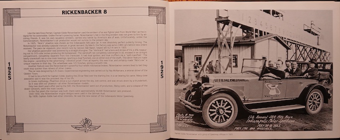 No surprise, there were fewer available images for the early years of 500s. Then too, many of those earlier pace cars also were from makers that wouldn’t long remain in business such as the one shown for 1925. “Only two short years after pacing the 500, the Rickenbacker went out of production. Rising costs, and a collapse of the dealer network, were the main causes.” Three years later Captain Eddie “was the new owner of the Indianapolis Motor Speedway.”