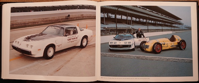 As its title suggests, this is a very focused book featuring each year’s 500-mile race pace car from the first in 1911 to a year prior to the book’s publication date. For each pace car there are at least two facing pages; words on the left and a good full-page, photo of the car on the right.