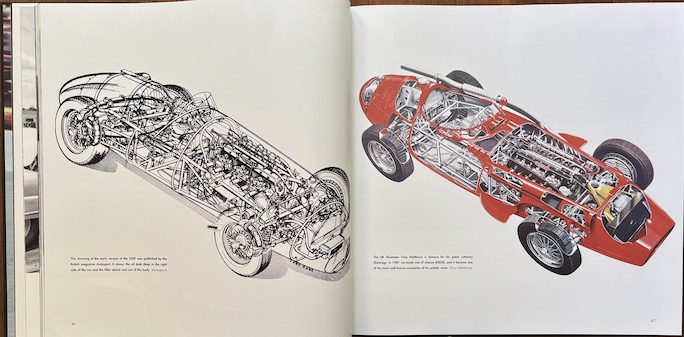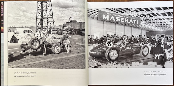Each volume is individually paginated and has its own multi-layered, thorough Index. Vol. 1, “The Story,” dedicated to McKinney, presents the overall model history, beginning with the 250F’s predecessor and the relevant technical and design considerations in light of the racing regulations and formats. Stand-alone chapters give mechanics their due, as well as the competition, without which a race car is an exercise in futility. Profiles of drivers and other people associated with Maserati’s racing efforts round out the picture.