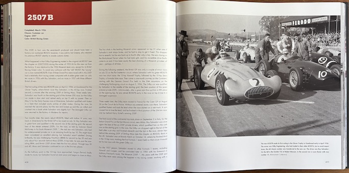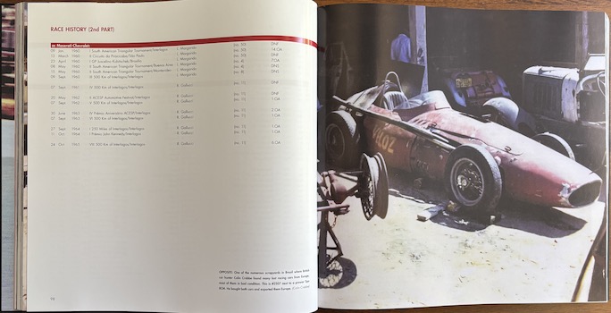 Vol. 2, “The Cars,” is dedicated to Hobkirk because the spreadsheets he had created for each racing season and amended if/when new verifiable info came to light are the backbone of the chassis histories. In view of the intro quote above, the fact that he recorded engine numbers and correlated them to the events in which they were used is the key reason many irregularities in the record can now be unraveled. It is a pity that he is no longer alive to see it and receive the thanks he so dearly deserves. The flip side to “clean” data is that some people (well, owners, “the trade”) will now be scrambling to hide their sins of having fudged provenances when there was little chance of being proven wrong. The well-chosen photos will play a role in that regard as well. The chassis/engine combos continue to be problematic/divisive even today, in Historic Racing, but that is a matter outside the scope and purpose of this fine book.