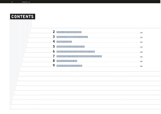 Näher had joined Porsche’s Testing Department fresh out of engineering school in 1969 (the 917 project had begun in June 1968, five years after Ferdinand Piëch had joined the company and meanwhile risen to Head of Development). In later years he moved on to the Mercedes Group C Project and the Sauber F1 team, his 917 days a distant memory—until he came across one at the Goodwood Festival of Speed in 2001. Something about that car’s serial number (Näher doesn’t specify what) motivated him to sequester himself at the Porsche Archive to research his “speculations.” This was merely intended to satisfy his personal curiosity but he took down “short, factual descriptions” as he went along. He created data files on 65 chassis, including partially built and customer cars and turned his findings over to the archive, just in case anyone else might ever have questions. And that’s when someone had the bright idea to expand on that material and turn it into a proper book. This, then, explains this book’s unusual approach and unusual title.